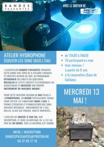 Au programme : détourner des objets du quotidien, bricoler de petits circuits électroniques ou acoustiques et inventer son propre instrument de musique unique. Pour cette huitième session de mai, place à l’hydrophone, un micro spécialement conçu pour capter les vibrations dans l’eau. Il permet d’écouter et d’enregistrer des sons souvent invisibles : mouvements de l’eau, bulles, glace qui craque, objets immergés.